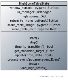 - The 'Top Ten' high score table - HighScoreTableState